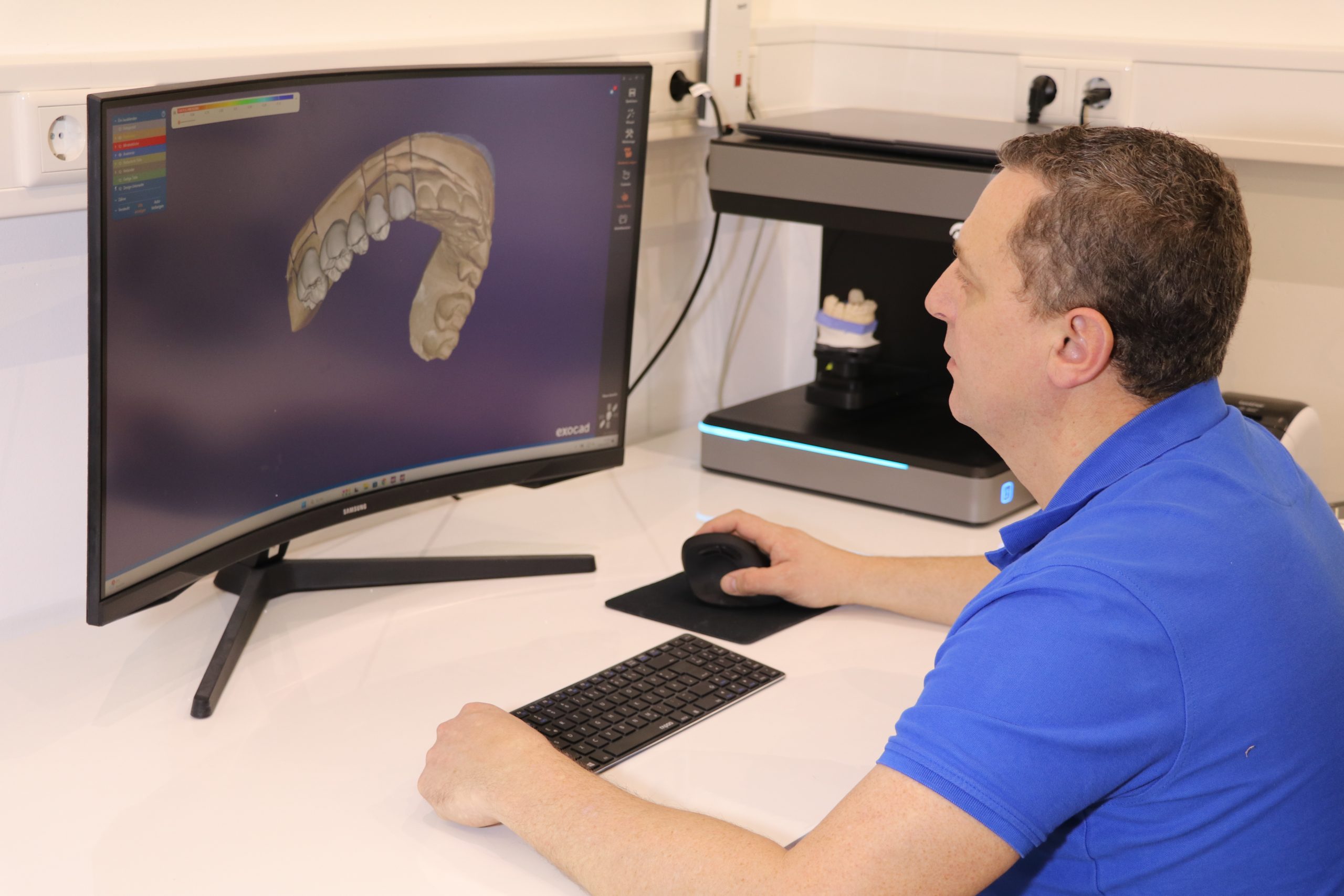 Wir setzen einen 3D-Drucker ein, um höchste Präzision und individuelle Lösungen zu gewährleisten. Kombiniert mit intraoralen Scan-Daten und digitalen Abdrücken ermöglicht uns diese Technologie schnelle, effiziente und maßgeschneiderte Ergebnisse.